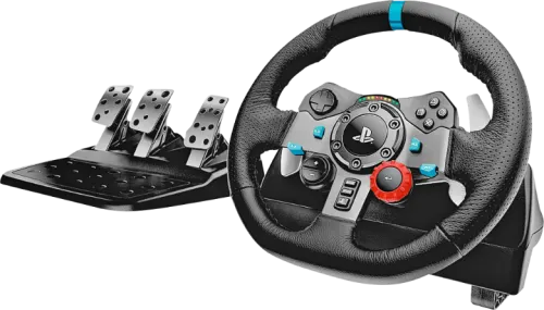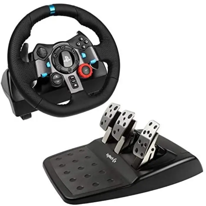 Designed for the latest PlayStation5, PlayStation4, and PC titles, G29 Driving Force features dual-motor force feedback and quiet helical gearing. On-wheel controls and RPM/Shift indicator LEDs help you make crisp, fluid gear transitions, while the pedals provide a quick, controlled response. Driving Force is built for comfort and durability with hand-stitched leather and stainless steel components.