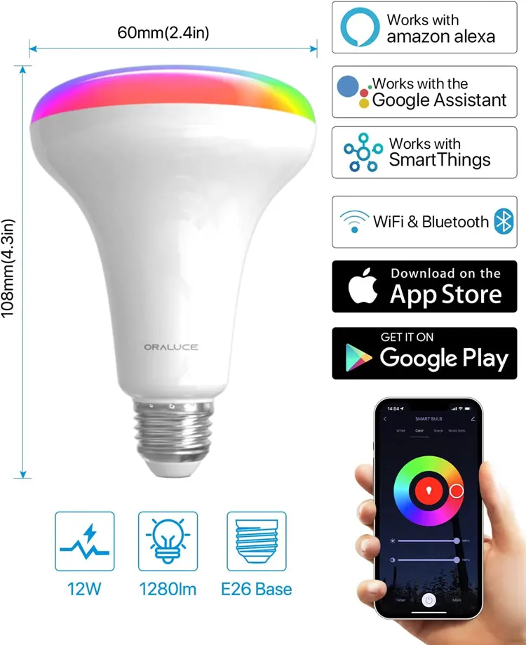 【Control by Voice】Compatible with Alexa, Google Home. Feel free to power your smart bulb on/off, adjust brightness, or change the colors with your voice or Smartphone (Smart Life app is required).