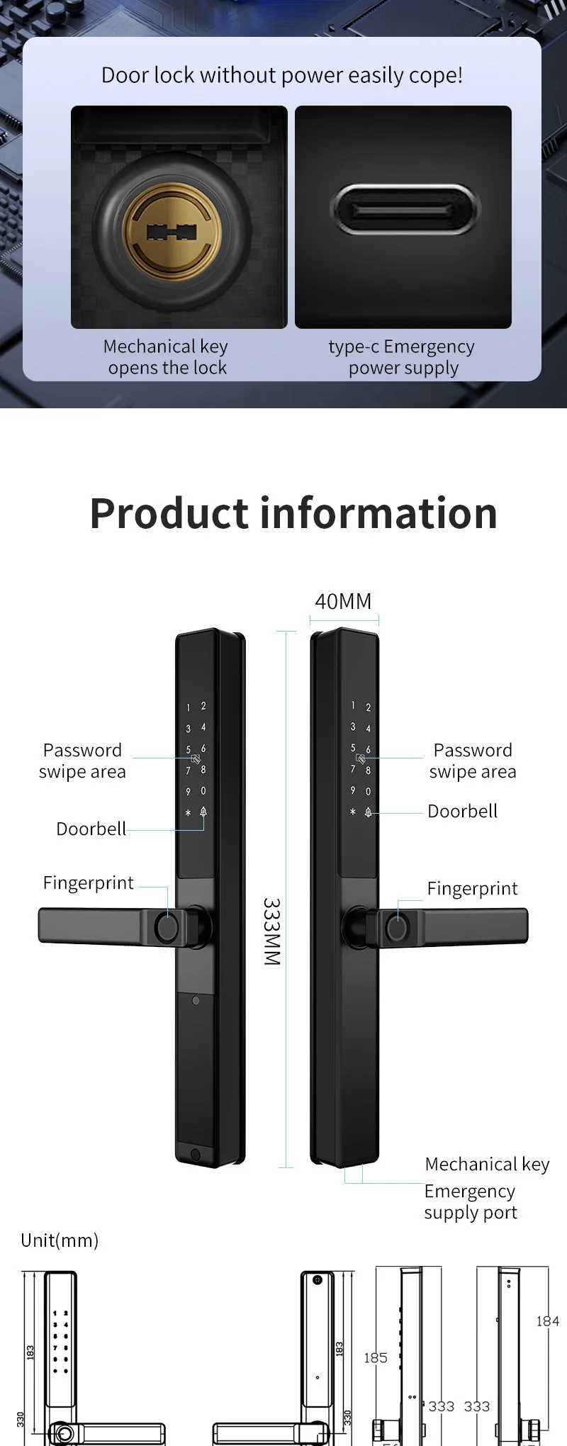 • Dual System Design: Both sides have fingerprints and passwords, both entry and exit require unlock