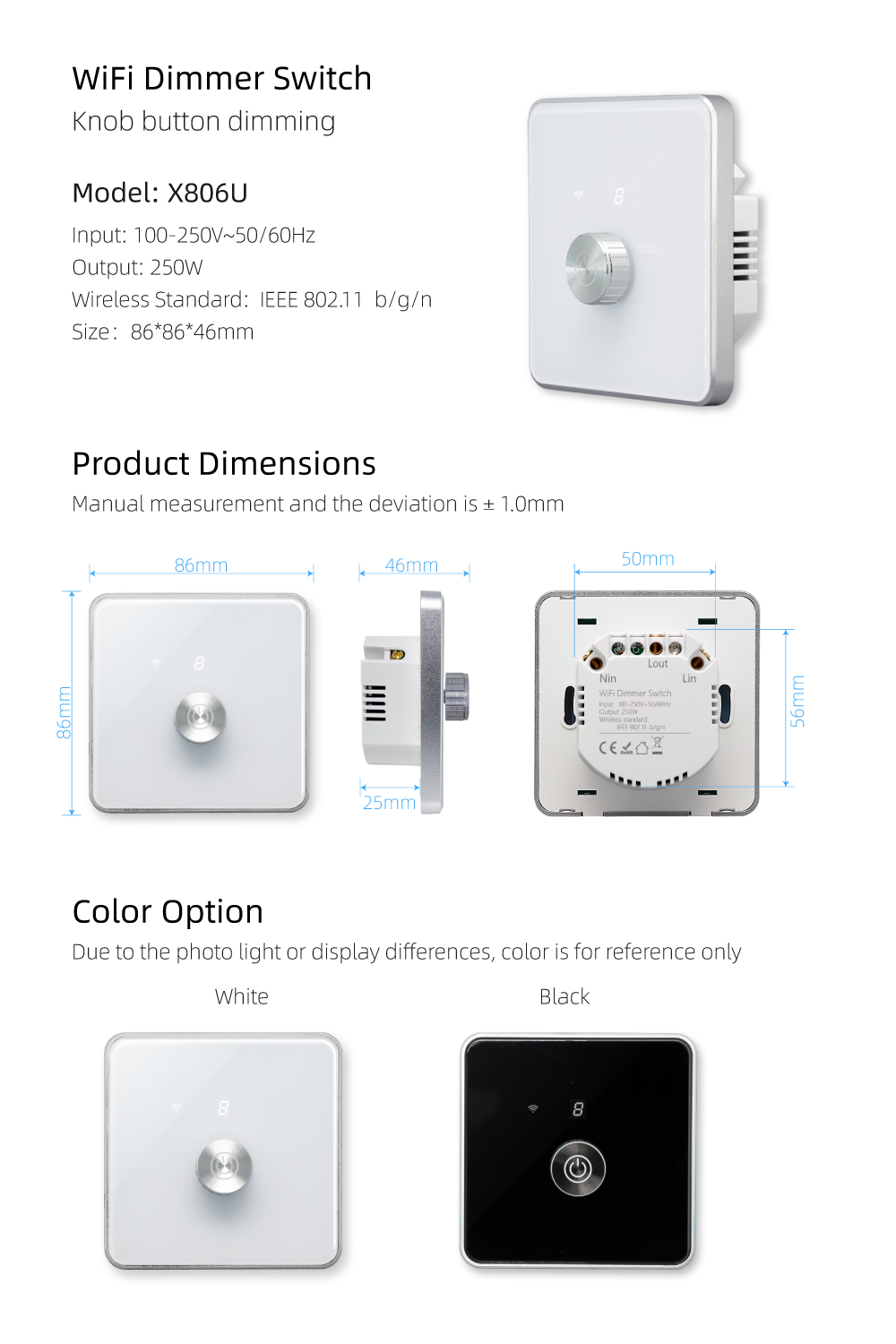 Rotary EU Standard Tuya WiFi Dimmer Switch.