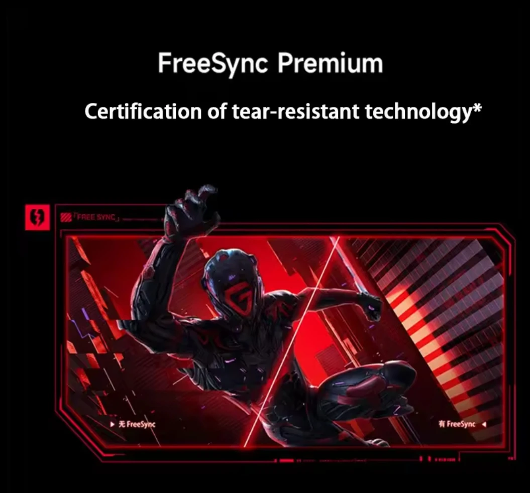 - FreeSync Premium anti-tearing technology certification, so that the graphics card and monitor transmission frame rate