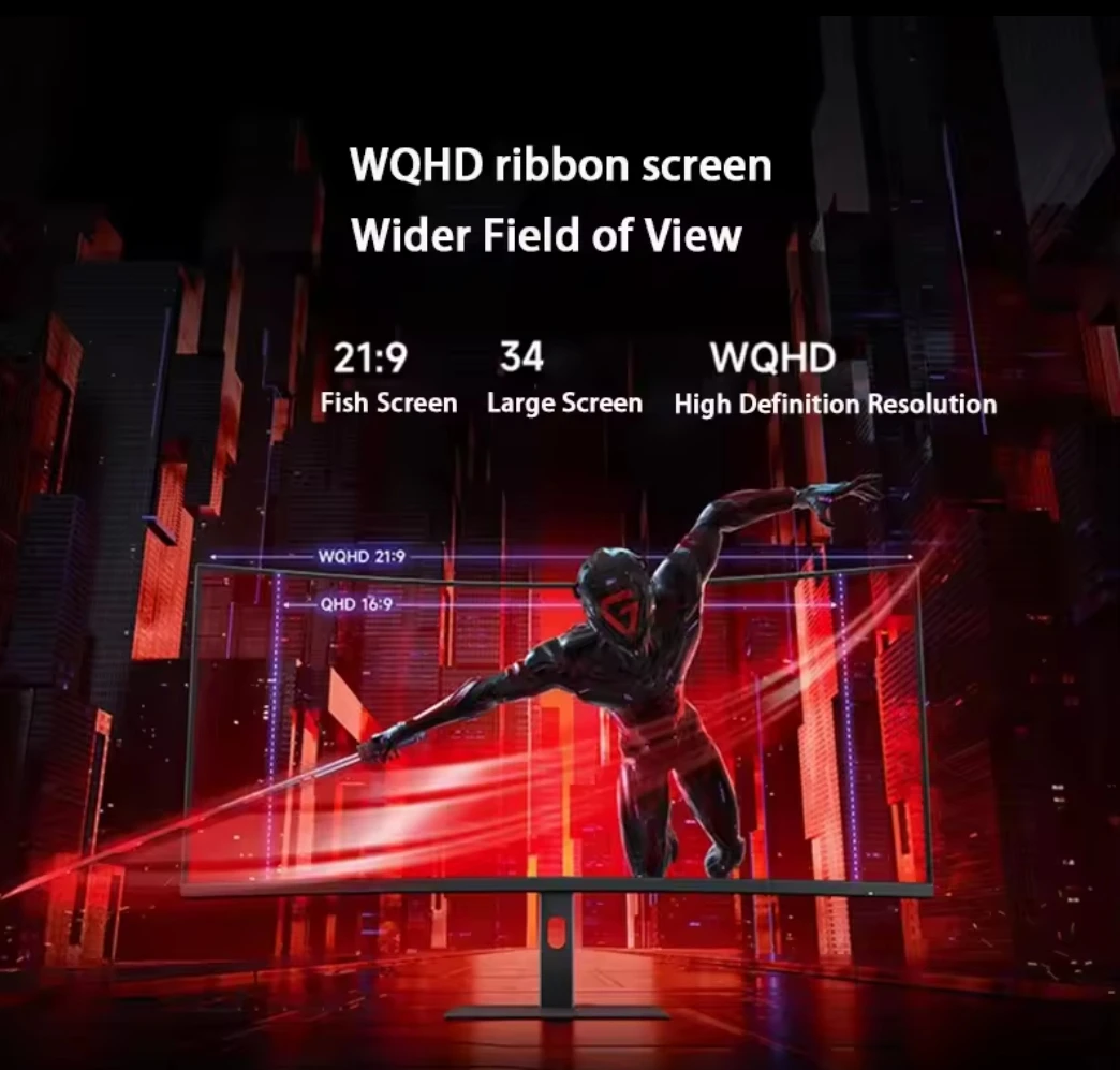 - WQHD fish screen, 21:9 ultra-wide ratio, wide field of view, 3440 x 1440 (maximum resolution/recommended resolution), selected